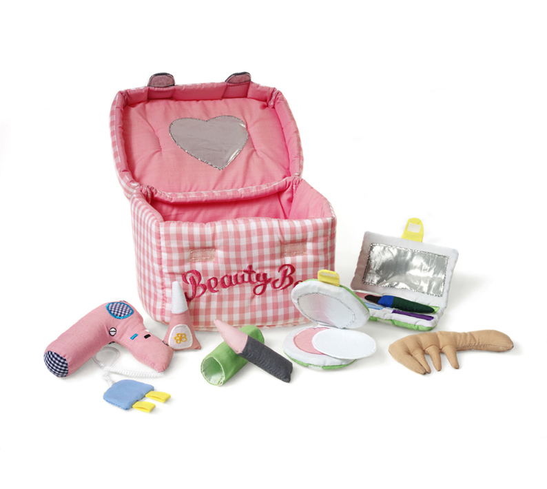 - Very sweet bag that contains exciting grown-up things such as lipstick, nail varnish, compact powder, eye shadow, make-up, comb, and hair dryer. In total 10 pieces. Ref. 2042 Warning, this toy is not suitable for children under 36 months – small parts. Made of 35% cotton and 65% polyester. 40°C hand wash.