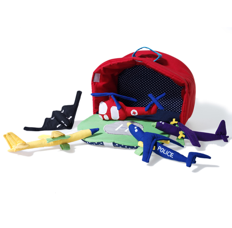 - This Hangar with airplanes opens up and reveals a helicopter landing platform, with four airplanes and a helicopter. A small loop is attached underneath each aircraft, so the child can put it on his/her finger and ‘fly away’! A perfect gift for a budding aviator! In total 6 pcs.