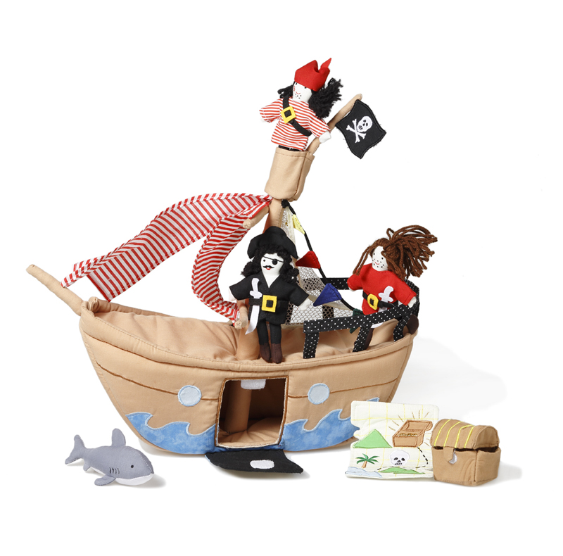 - Ahoy matey! This wonderful set will provide hours of pretend pirate ship adventure. Shiver me timbers! Includes ship, captain, two pirates, removable plank, cannon, treasure chest, treasure map and a shark. In total 9 pieces.